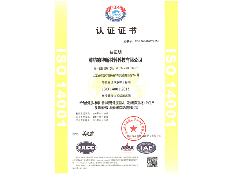 環(huán)境管理體系認(rèn)證證書